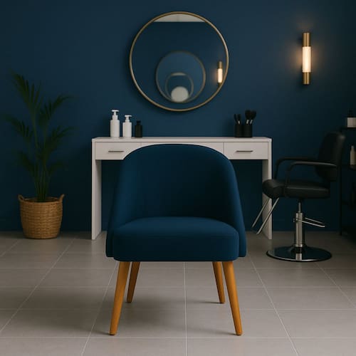 Banqueta Poltrona Lua Marinho Para Recepção Atendimento Penteadeira - Azul Marinho