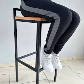 O assento em madeira de reflorestamento, específicamente em eucalipto, com pintura em verniz incolor, não apenas adiciona um toque de beleza natural ao design industrial, mas também reflete nosso compromisso com a sustentabilidade. A estrutura é construída com perfil tubular de aço de 20x20mm, proporcionando estabilidade e durabilidade.