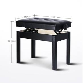Banqueta para piano/teclado- Assento acolchoado em couro sintético que não é apenas confortável, mas também extremamente elegante. O design vintage, irá complementar seus móveis e oferecerá uma sensação de luxo. Além disso, o banco possui uma estrutura de madeira sólida e pernas para uma ótima estabilidade e desempenho.- Altura do banco de piano é 100% ajustável, de modo que cada membro da sua família pode usá-lo facilmente. Tudo o que você precisa fazer é girar os botões simples e ajustar a altura de 46 cm para 56 cm. - Dimensões Altura: 46 - 56 cm Assento: 55 - 34 cm - Capacidade de carga:150 kg- Capacidade de pessoas:1- Material: couro sintético e madeira maciça.- Assento: com 6 botões.- Peso:9 Kg- Cor: preto- Perfeito para escolas, igrejas, bares, orquestras, estúdios de gravação, bandas de música e concertos. Marca: Aj Som Acessórios Musicais