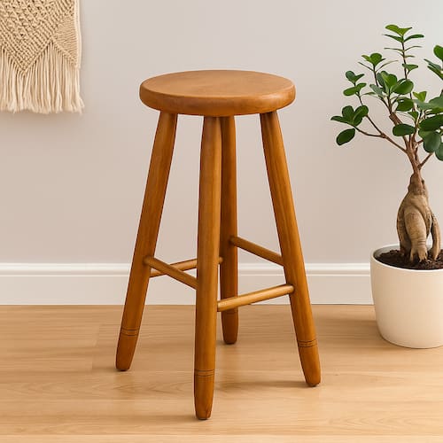 Banqueta Redonda de Madeira – 70cm de Altura x 30cm de Diâmetro Com um design rústico e atemporal, esta banqueta redonda de madeira é perfeita para compor cozinhas, bancadas, bares ou áreas gourmet. Fabricada em madeira maciça, oferece resistência e durabilidade, com acabamento natural que valoriza os veios e a textura da madeira. Seu assento circular de 30cm de diâmetro garante conforto, enquanto a altura de 70cm é ideal para uso em bancadas e balcões. As quatro pernas levemente inclinadas aumentam a estabilidade e contam com travessas inferiores que também funcionam como apoio para os pés, proporcionando ainda mais conforto no uso diário. Características: