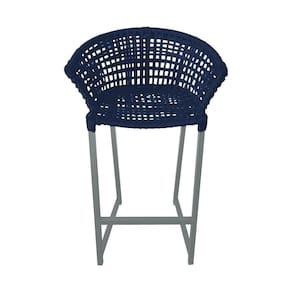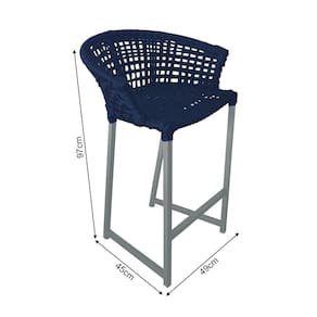 IMAGENS MERAMENTE ILUSTRATIVAS REALIZADO EDIÇÃO, PODENDO HAVER UMA PEQUENA VARIAÇÃO DE COR DEPENDENDO DE CADA TELA OU MONITOR.Banqueta Reis em Corda NÃutica e Base em AlumÃnio Cinza para Ãrea Gourmet - Externa Azul Marinho