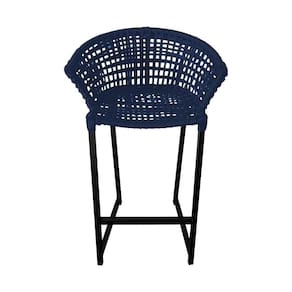 IMAGENS MERAMENTE ILUSTRATIVAS REALIZADO EDIÇÃO, PODENDO HAVER UMA PEQUENA VARIAÇÃO DE COR DEPENDENDO DE CADA TELA OU MONITOR.Banqueta Reis em Corda NÃutica e Base em AlumÃnio Preta para Ãrea Gourmet - Externa Azul Marinho