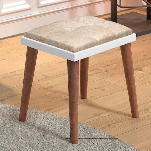 A Banqueta Retrô com pés em Madeira Jequitibá é o item que falta para a sua penteadeira. Versátil, ela serve também para colocar em qualquer lugar do quarto, utilizando para sentar ou até mesmo para apoiar e descansar os pés.
