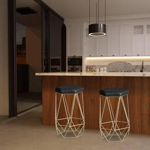 Banqueta Decorativa Rubel Base Gold PU Preto - Gran Belo É ideal para quem está à procura de um produto moderno para decorar o ambiente de forma despojada. Sua estrutura é totalmente em ferro com pintura eletrostática, o que torna o produto mais resistente. A Banqueta Rubel pode decorar sua sala, sua cozinha, área gourmet, varanda, e muito mais! Corre aproveitar.