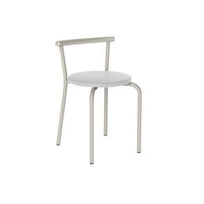 Banqueta Sala De Jantar 105 Kit 2 Un Prata - Assento Courano Branco - Carraro