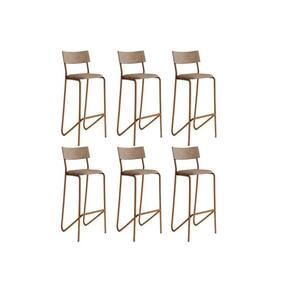 Banqueta Sala De Jantar Atlas 1747 Kit 6 Uni Rose/linho Areia/courano Caramelo - Carraro