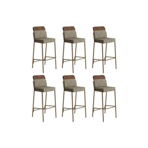 Banqueta Sala De Jantar Duo 1753 Kit 6 Un Rose/linho Areia/courano Caramelo - Carraro