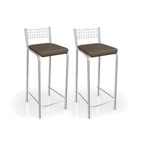 Banqueta Sala De Jantar Gênova 2b705cr Kit 2 Un Cromado/courano Marrom - Kappesberg