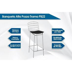 Banqueta Sala de Jantar Trama PB22CR 1 Un Vinil Preto/Cromado - Pozza Marca: Pozza