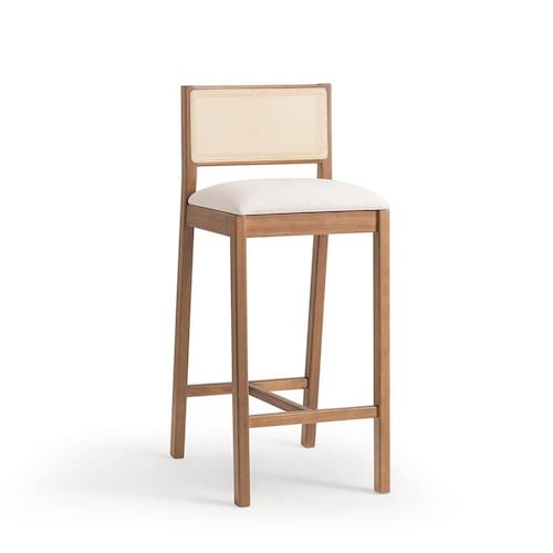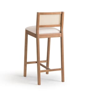 A Banqueta Serena possui estrutura em madeira maciça jequitibá 30mm, encosto em fibra natural, enchimento do assento em espuma D26, pés em madeira maciça, acabamento em pintura PU e revestimento em algodão e poliésterVendido e entregue por MOBLY COMERCIO VAREJISTA LTDA.