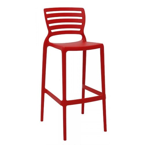 A Banqueta Tramontina Sofia Summa Alta Bar em Polipropileno e Fibra de Vidro Vermelha. Com design moderno e linhas diferenciadas, essa cadeira alta torna os ambientes mais bonitos e modernos.