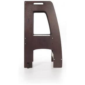 O design em tom espresso foi desenvolvido para integrar-se a móveis de cozinha em cores escuras, mantendo base com quatro apoios para uso em piso plano. O produto é indicado para crianças de aproximadamente 3 a 7 anos, sempre com supervisão adulta durante o uso, especialmente em atividades próximas a fogões, pias e utensílios cortantes.?
