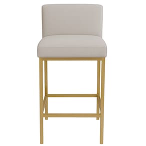 O modelo conta com encosto estofado, que oferece melhor apoio e mais comodidade durante o uso. Sua estrutura alta com apoio inferior para os pés complementa a funcionalidade da peça, tornando a banqueta ainda mais confortável e prática para o dia a dia.