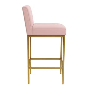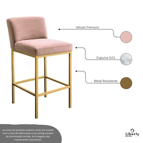 O modelo conta com encosto estofado, que oferece melhor apoio e mais comodidade durante o uso. Sua estrutura alta com apoio inferior para os pés complementa a funcionalidade da peça, tornando a banqueta ainda mais confortável e prática para o dia a dia.