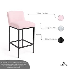 O modelo conta com encosto estofado, que oferece melhor apoio e mais comodidade durante o uso. Sua estrutura alta com apoio inferior para os pés complementa a funcionalidade da peça, tornando a banqueta ainda mais confortável e prática para o dia a dia.