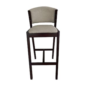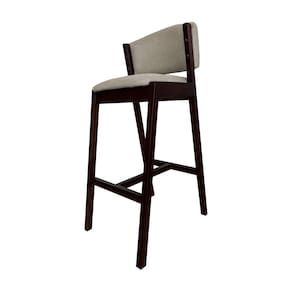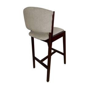 Banquetas Alta de Madeira Maciça Castanho Premium Ana com Encosto Linho Bege - Cinza