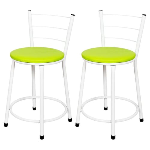 Banquetas Baixa Para Cozinha Branca 2Un Assento Verde