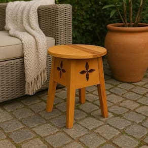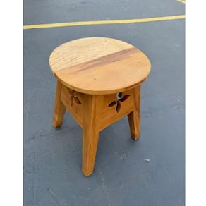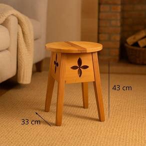 Charmoso e funcional, este banquinho artesanal de madeira maciça é ideal para compor ambientes externos e internos com um toque rústico e acolhedor. Seu diferencial está no detalhe vazado em formato de flor entalhada, que adiciona beleza e personalidade à peça.