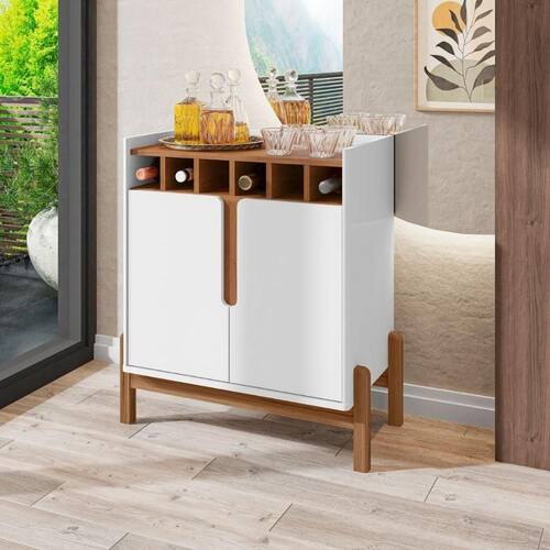 O Bar com Adegas, é perfeito para sua sala de estar ou jantar! Foi desenvolvido pensando na praticidade do seu dia a dia aliado à beleza de seu ambiente, possui 6 compartimentos para armazenar garrafas deitadas e 2 portas com dobradiças. Tudo isso para lhe proporcionar melhor experiência na recepção de suas visitas e organizar suas bebidas.