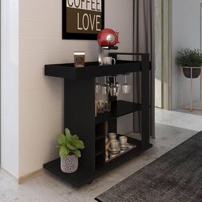 Feito em MDP 15mm, o Bar acompanha rodizios com trava, porta garrafas e dois seguradores de taça. Seu tampo é espelhado.