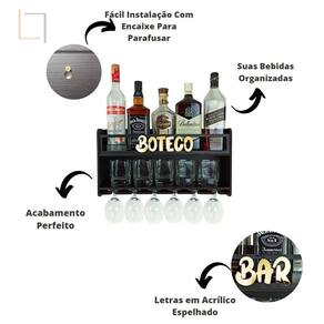 Bar barzinho adega suporte de parede para whisky destilados Nosso barzinho de parede veio para somar no seu espaço e ainda conseguir manter tudo organizado e fácil de localizar. Com capacidade para 6 taças, copos e garrafas.