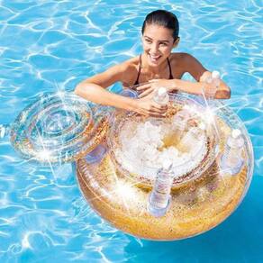 Características: Marca: Intex Referencia: 56810 Diâmetro interno de 35 cm Capacidade para 30 latas Conta com 1 tampa com fecho de fita auto adesiva para manter as bebidas frias Cinco portas copos incorporados Dimensões: 74 cm de largura x 33 cm de altura