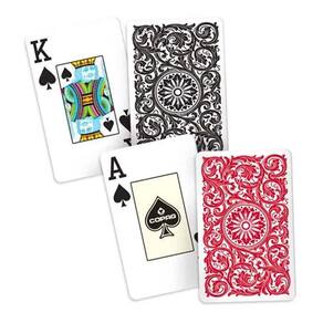 Esta embalagem contém 2 baralhos plásticos de 54 cartas cada, formato Bridge (57mm x 89mm)