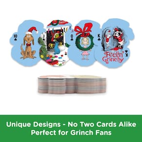 - PROCURANDO PRESENTES PARA GRINCH? Este baralho de cartas moldadas do Grinch é o melhor presente para fãs de todas as idades. Perfeito para noites de jogos, aniversários, meias, elefantes brancos e presentes de Natal, que todos adorarão receber de presente