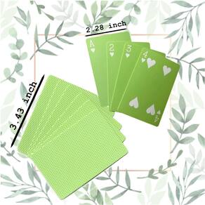 Pacote de 2 cartas de baralho verdes, jogos de cartas verdes, baralho de cartas verdes, pôquer verde, baralho de cartas verdes, lembrancinhas verdes, suprimentos para festas verdes -?Cartões de jogos verdes?Você receberá 2 conjuntos de cartas verdes. Cada baralho contém 52 cartas do mesmo naipe e 2 coringas, tamanho de 2,5 x 3,5 polegadas (57 x 87 mm). -?Design de tema verde?Esses cartões verdes são divertidos e vêm em um esquema de cores verde. Padrões de impressão requintados e cores brilhantes fazem com que pareça linda e descolada. -?Cartolina de qualidade?Baralhos verdes feitos de papel grosso com construção em núcleo branco, cores brilhantes não desbotam facilmente. Flexível e fácil de embaralhar. -?Ideia de presente?Um bom presente ideal para aniversários, Natal, Ano Novo, Páscoa, Ação de Graças, aniversários e muito mais. É perfeito para noites de jogos em família, viagens, reuniões, festas e sempre que você quiser um jogo envolvente e divertido. -?Compatível?Esses green cards podem ser utilizados em qualquer jogo de cartas, incluindo Poker, Hand & Foot, Rummy, Go Fish, Spades, Hearts, Slap Jack e muito mais. Ótimo para grandes torneios de pôquer e noites de jogos de cartas.