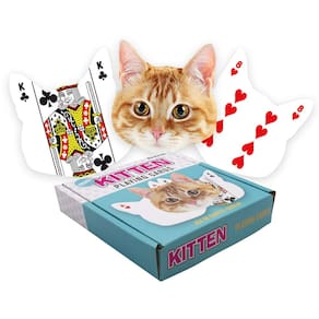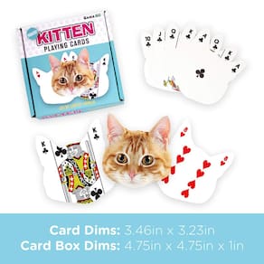 - Baralho de cartas em forma de gatinho: jogue seus jogos de cartas favoritos com amigos e familiares enquanto desfruta deste baralho em forma de gatinho. Ótimo para espadas, pôquer, blackjack, pinochle, solitário e muito mais!