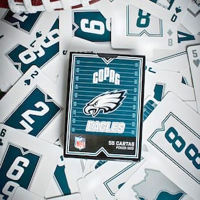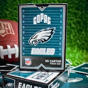 Descrição do produto : Baralho NFL - Philadelphia Eagles Transforme suas noites de jogos com o Baralho NFL - Philadelphia Eagles! Este baralho exclusivo destaca o espírito dos Eagles com designs inspirados nos logos e emblemas icônicos da equipe. Cada carta é adornada com detalhes únicos, incluindo imagens de capacetes e outros símbolos do time. Produzido com papel 300g/m² de alta qualidade e acabamento com verniz especial, garante durabilidade e uma sensação premium ao toque. Com 55 cartas no formato poker size, é a escolha perfeita para jogos com amigos ou para colecionadores apaixonados. A embalagem temática é um ótimo complemento para qualquer fã dos Eagles. Garanta o seu Baralho NFL - Philadelphia Eagles hoje e explore nossa coleção completa de baralhos temáticos! : Detalhes técnicos : Marca: Copag : Referência: 34585 : Idade recomendada: 18 : Material: Cartão : Ean: 7896192345844 : Peso (kg): 0,10 : Dimensões aproximadas da embalagem: 9 x 6 x 2 cm : Contém: 55 cartas no tamanho poker : Tamanho da carta : Poker Size
