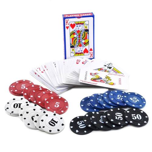 Baralho de Papel 54 Cartas com 24 Fichas de P Baralho de papel com 54 cartas e 24 fichas de poker.\nEspecificações :\nMarca : C3B\nTipo de material : Plástico e Papel\nCores ou Estampa :\nDimensões do Produto : 16cm X 17cm X 1,5cm CM\nDimensões da Embalagem : 16,5 X 17 X 1,5 CM\nPeso Bruto (Gramas) : 0.178 Marca: Não Informado