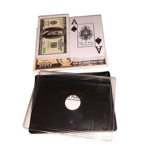 INFORMAÇÕES ADICIONAISMarca: DYNASTYReferência do fornecedor: BAR-69139Código de barras: 7899454450393Material: PlásticoEstampa: DólarQuantidade de cartas: 108Dimensões do produto: 9,5 x 2 x 12,5 cmPeso bruto aproximado: 10 gramas