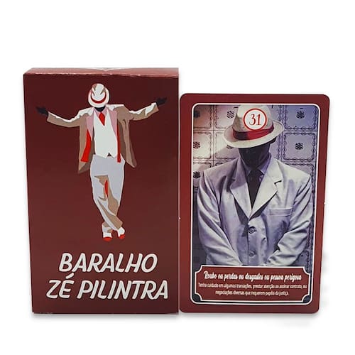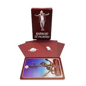 "Quem bebe do meu copo, senta na minha mesa e se abriga debaixo do meu panamá... Desamparado nunca à de ficar!" Baralho Tarô Tarot Baralho Zé Pilintra - Baralho do Malandro Zé Pilintra 36 Cartas E Manual Zé Pelintra é uma entidade espiritual de origem afro-brasileira. Zé Pelintra é invocado quando seus seguidores precisam de ajuda com questões que envolvem o lar e os negócios. É conhecido por ser um obreiro da caridade e da feitura de coisas boas. Como aprender a ler cartas? Também é preciso levar em conta que existem várias formas de como jogar tarot com cartas normais. O tarô é uma ferramenta de autoconhecimento. Ele não indica o caminho exato a seguir, mas oferece opções e reflexões. Ao chegar a uma consulta, você pode ter uma pergunta pronta na cabeça ou pedir um panorama geral da sua vida. Contém: 36 cartas e 01 livreto explicativo. Dimensões aproximadas do produto: Altura total: 10,5 cm Largura total: 7 cm