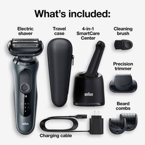 Barbeador elétrico Braun para pele sensível, barbear úmido e seco, série 6 6075 cc, com aparador de barba, SmartCare Center Clean & Charge e estojo de viagem de couro, recarregável, preto