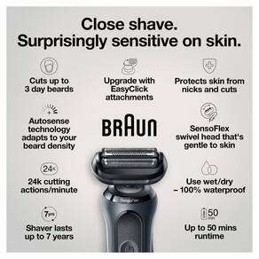 — Proximidade e conforto para a pele: a cabeça giratória SensoFlex, testada dermatologicamente, e as lâminas SensoFoil foram projetadas para minimizar a pressão em peles sensíveis -