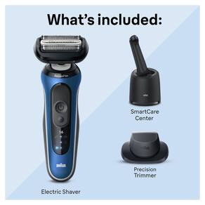 Barbeador elétrico Braun para homens, série 6 6172 cc, barbear úmido e seco, modos de barbear turbo e suave, barbeador de alumínio, azul