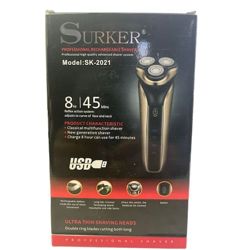AFEITADORA ELÉTRICA, RECARGÁVEL DE TRÊS CABEÇAS SK-2021Tres cabezales de afeitar independientes y multidireccionales, que pueden ajustar el afeitado de acuerdo con el contorno de la cara. La parte superior e inferior, izquierda y derecha, diantera y trasera se ajusta a la cara flotante multidirecional, y la cabeza del cuchillo se puede aplicar ligeramente sobre la piel facial. puedes afeitarte fácil y rápidamente moviéndote a derecha e esquerda.cuchillos con dispositivo de corte y afeitado pendiente de tres anillos, innovadora tecnología Red para cuchillos de superficie curvada, afeitado suave de baja fón, reducir la sensación irritante, haciendo que el afeitado sea un placer (S tecnología de pesca: el diseño en forma de S del almacén de la red de cuchillos puede capturar la barba de diferentes angulos, Afeitado rápido y eficaz.) Recargable para usar, también se puede enchufar y utilizar.Características:Modo de alimentación: carga/alimentación doble usoTipo de cabezal de herramienta: flotante inteligente de tres cabezasCarga: carga de línea de alimentación Tempo de carregamento da afetadora: 8 horasDuração de uso: 45 minutos aproxCabezal de afeitadora: 3 cabeças GiratoriosFrequência nominal: 50 HZ/60 HZ...