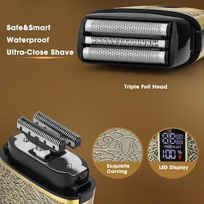 Liberte o poder de um barbear suave e limpo com os barbeadores elétricos Dumite para homens. Equipado com um motor robusto e lâminas triplas, este barbeador elétrico apara pelos faciais sem esforço, deixando sua pele revigorada. Projetado para homens carecas, funciona como um barbeador de cabeça eficiente, garantindo um visual elegante e polido. O visor LED e o carregamento USB o tornam conveniente de usar, enquanto o design à prova d'água permite uma limpeza fácil. Este aparador de barba versátil é uma ferramenta essencial de cuidados para homens, perfeito para uso doméstico ou profissional de barbeiro. Eleve sua rotina de cuidados com este barbeador elétrico de alto desempenho, um presente atencioso para o homem moderno. - Motor potente: Este barbeador elétrico masculino está equipado com um motor de alto torque que proporciona um barbear suave e rente. - Sistema de barbear de folha tripla: as três folhas ultrafinas proporcionam um barbear confortável e eficiente, mesmo em pelos faciais resistentes. - Design à prova d'água: o barbeador é totalmente à prova d'água, permitindo um barbear conveniente em água corrente ou molhada. - Visor LED: o visor LED integrado mostra o nível da bateria e o status da trava de viagem para conveniência ideal. - Recarregável por USB: o barbeador possui uma porta de carregamento USB para recarga sem complicações, tornando-o um companheiro de viagem ideal.