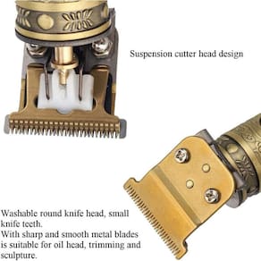 Fácil de limpar a cabeça de corte, pode ser rapidamente enxaguada sob água corrente. Não coloque a máquina de cortar cabelo elétrica na água, só permita que a lâmina seja enxaguada. Potência forte e estável, cabeça afiada do cortador, capacidade de corte poderosa, não tem perigo de cortes na pele.
