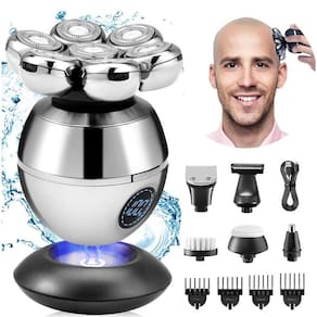 Barbeador elétrico lavável com lâminas ajustáveis e eficazes O Barbeador Elétrico 7D Alex é ideal para um barbear rente e confortável, perfeito para aparar barba, bigode e cabelo.