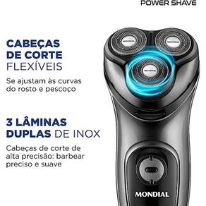 O barbeador elétrico power shave mondial bivolt be-02, conta com 3 lâminas duplas de inox, para um corte rápido, preciso e suave, deixando sua pele lisa e sem cortes.