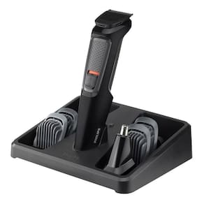 Aparador multifuncional- Aparador 6 em 1 6 ferramentas Lâminas de aço autoafiadoras Até 60 minutos de funcionamento Acessórios laváveis -Lâminas autoafiadoras e que não irritam a pele para um acabamento perfeito -Apare e modele sua barba com seis ferramentas -Apare as bordas da barba e do pescoço para completar o visual -O aparador de pelos do nariz remove gentilmente pelos indesejados do nariz e das orelhas -4 pentes para aparar sua barba -1 pente para barba por fazer (1 mm) e 3 pentes para barba (3, 5 e 7 mm) -Tempo de funcionamento: até 60 minutos de uso sem fio por carga -Acessórios laváveis, para facilitar a limpeza -Suporte de armazenamento para organizar o aparador e as ferramentas