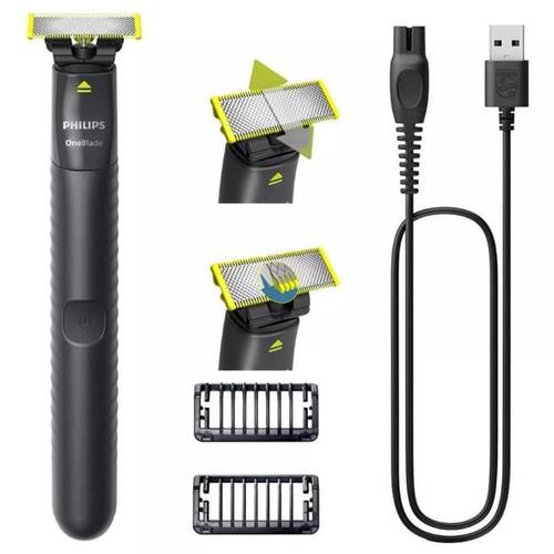 Barbeador elétrico philips oneblade qp1424/10 one blade aparador de pelos aparador e raspador philips oneblade qp1424/10 com 2 pentes, à prova dágua - bivolt