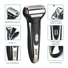 Código de barras: 7891102451035 Barbeador Elétrico Profissional 3 em 1 Shaver Aparador de Pelos Recarregável Bivolt Marca: Eletromex O Barbeador Elétrico Profissional 3 em 1 é uma ferramenta versátil e eficiente para o cuidado pessoal masculino. Projetado para oferecer um barbear rente e confortável, além de funcionalidades de aparador de pelos, este dispositivo recarregável e bivolt é perfeito para o uso diário e para viagens. Características Principais: -Sistema 3 em 1: Oferece três funções principais em um único aparelho: Barbeador (Shaver): Proporciona um barbear suave e rente, ideal para o rosto e pescoço. -Aparador de Pelos: Permite aparar pelos de diversas áreas, como barba, bigode e costeletas, com diferentes níveis de altura utilizando os pentes guia -Aparador de Pelos de Nariz e Orelha: Geralmente acompanha um acessório específico para remover de forma segura e confortável os pelos indesejados do nariz e das orelhas. -Barbeiro e Acabamento: Ideal para modelar a barba, criar contornos definidos e realizar acabamentos precisos. -Recarregável: Funciona sem fio, oferecendo maior liberdade de movimento durante o uso. A bateria recarregável proporciona autonomia para múltiplos usos com uma única carga. -Bivolt Automático: Compatível com tensões de 110V e 220V, tornando-o perfeito para uso em qualquer lugar, seja em casa ou em viagens internacionais. -Design Ergonômico: Possui um design moderno e ergonômico que se adapta confortavelmente à mão, facilitando o manuseio e proporcionando maior controle durante o barbear e o aparo. -Lâminas de Alta Qualidade: Equipado com lâminas afiadas e duráveis que garantem um barbear eficiente e confortável, minimizando a irritação da pele. -Fácil de Limpar: Geralmente possui cabeças removíveis e laváveis, facilitando a limpeza e manutenção do aparelho. Acompanha escova de limpeza para auxiliar na remoção de pelos. -Portátil: Leve e fácil de transportar, ideal para levar em viagens. Especificações Técnicas: -Tipo: Barbeador Elétrico 3 em 1 (Shaver, Aparador de Pelos, Aparador de Nariz/Orelha) -Alimentação: Bateria Recarregável -Voltagem: Bivolt (110V/220V) Acessórios Inclusos: -Cabeça de barbear (Shaver). -Cabeça de aparador de pelos -Cabeça de aparador de pelos de nariz e orelha. -Cabo de carregamento. -Escova de limpeza. -Óleo lubrificante (para manutenção das lâminas). -Manual de instruções. Disponível na cor: -Preto com Prata Medidas da embalagem: L: 8,0 x C: 12,5 x A: 22,5cm Peso do Produto: 385g