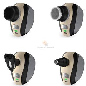 Este aparador é tudo-em-um com cinco cabeças destacáveis, oferecendo tudo o que você precisa para aparar o cabelo e cuidar do seu rosto