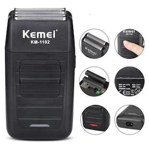 Barbeador Elétrico Shaver Sem Fio Kemei 2 Lâminas Km-1102 Descrição Chegou o novo shaver Kemei KM-1102, ele é um barbeador elétrico para finalização que corta os pelos na raiz deixando a pele bem lisa como se tivesse passado Gillette ou navalha. Pode ser utilizado também para depilar partes do corpo e cabeça.