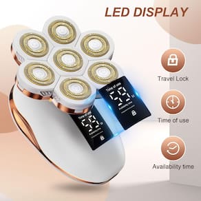 depilador elétrico - ?Lâminas elétricas 7D?Nosso barbeador elétrico, com tecnologia 5D avançada, oferece um barbear rente. Cabeças flexíveis e um sistema rotativo seguem as curvas do seu corpo, removendo o cabelo sem cortes ou irritação - ?Kit de cuidados femininos 2 em 1?O barbeador feminino oferece uma solução abrangente para todas as suas necessidades de cuidados pessoais. Inclui um barbeador rotativo 7D, peça de aparador de cabelo, você pode obter uma pele lisa sem esforço sem qualquer irritação - ?Design resistente à água? O design resistente à água dos barbeadores elétricos 2 em 1 para mulheres permite que você o use no chuveiro e durante o barbear a seco. Você pode desfrutar de uma experiência luxuosa de barbear molhado - ?Bateria de longa duração?Este barbeador elétrico está equipado com uma bateria de íon de lítio de alta qualidade que oferece desempenho duradouro. você pode desfrutar de várias sessões de cuidados sem a necessidade de recargas frequentes ou interrupções - ?Tarefa concluída?Fácil de usar e fácil de usar: nosso barbeador elétrico é projetado com a máxima conveniência em mente, tornando-o simples e fácil de usar