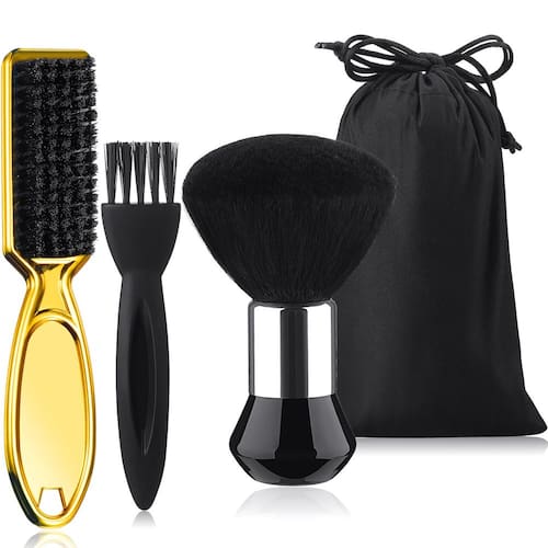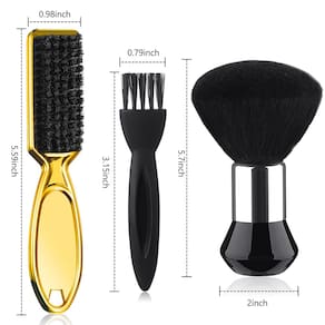 3 peças de escova de cabeleireiro, escova de barbeiro, ferramentas de limpeza, escova grande para cortar o pescoço com bolsa de armazenamento preta para rosto, pescoço e estilo de cabelo. Características: escova espanadora de pescoço de barbeiro, uma escova de limpeza de pescoço macia para corte de cabelo, ferramenta de barbeiro profissional para salão de beleza. Escova de cabelo para limpeza facial de barbeiro, limpe facilmente os cabelos soltos após o corte, aparar ou barbear. Cabo de madeira maciça, antiderrapante, aderência mais confortável. Cerdas macias, confortáveis, não deformam facilmente. Conveniente e durável, prático para uso em salão de beleza ou uso doméstico. Especificações: Material das escovas de limpeza do cortador: cerdas macias, cabo ABS Material do espanador do pescoço: fibra Cor: preto, marrom O pacote inclui: 1 x escova de barbear preta 1 x escova de limpeza de barbeiro preta 1 x bolsa de armazenamento preta com cordão - Conjunto atencioso e útil: ao receber o pacote, você terá 1 escova de limpeza dourada para corte de cabelo, 1 escova de barbear preta, 1 escova de limpeza de barbeiro preta e 1 bolsa de armazenamento preta com cordão, os vários estilos e tamanhos diferentes atenderão às suas diferentes necessidades - Prático de aplicar: este kit de limpeza de barbeiro é ideal para limpar ferramentas de corte de cabelo, limpa-os e remove todo o cabelo, também funciona muito bem para escovar cabelos finos enquanto faz linhas e apara barbas. Este produto é fácil de usar em qualquer salão ou barbeiro, também ótimo para uso doméstico - Design inteligente: estes pincéis têm diferentes tamanhos e funções, podem desempenhar diferentes papéis na limpeza, a parte inferior da escova de cabelo pode ficar em pé, o que é mais conveniente de usar, e a combinação de pincéis é mais favorável do que outras - Toque confortável: as cerdas de nylon agradáveis ao toque se adequam aos rostos da maioria das pessoas, se você usa o kit de limpeza de barbeiro com frequência ou pela primeira vez, ou sua pele é muito frágil, as cerdas de nylon desta escova de pescoço são macias, por isso protege sua pele - Confiável e de longa duração: este produto não vai cair das cerdas facilmente, o que pode garantir o seu uso a longo prazo, e a aparência não será facilmente suja, mesmo que esteja sujo, a escova pode ser enxaguada debaixo d'água por alguns segundos para ficar limpa e será a mesma que nova
