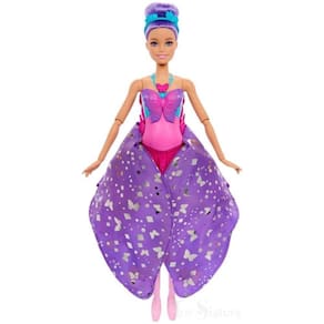 Inspire a imaginação a voar alto com a boneca Barbie Bailarina Borboleta e sua transformação mágica 2 em 1. Para começar a brincar, basta pressionar o colar no corpete da boneca para ver sua saia roxa desdobrar-se como mágica em grandes asas de borboleta cintilantes. A boneca possui encantadores cabelos roxos com um coque, tiara floral, um corpete deslumbrante e sapatilhas de ballet para completar o visual. É um presente fantástico para crianças a partir de 3 anos de idade. A boneca não fica em pé sozinha. As cores e as decorações podem variar.